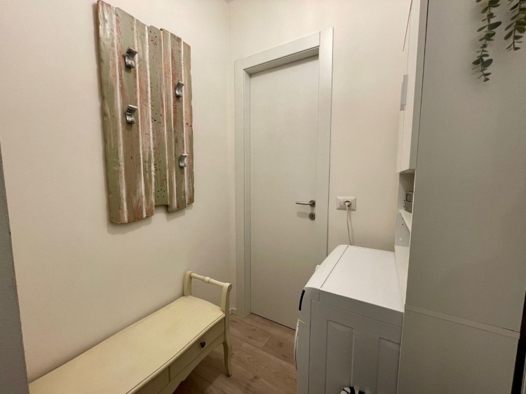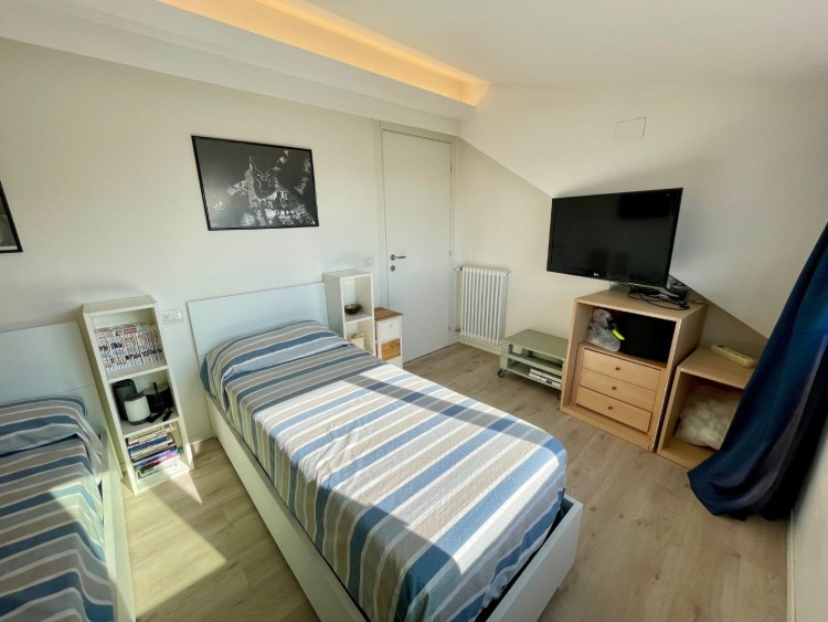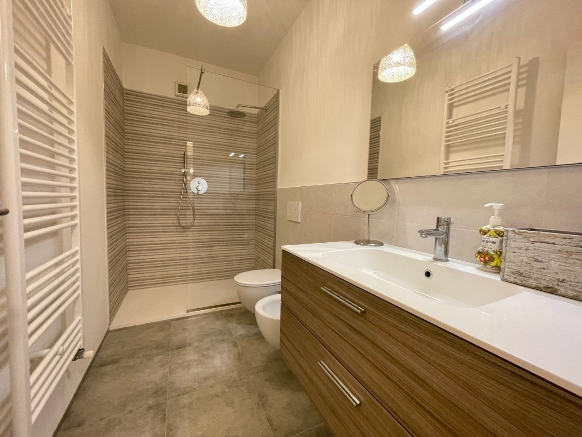 Prostorný a elegantní podkrovní byt o rozloze cca 100 m²se nachází v samém srdci města, jen pár kroků od pěší zóny Corso Genova, přístavu a pláže. Byt se nachází v 6. a 7. patře v budově s výtahem. Byl kompletně zrekonstruován a je vybaven topným systémem. V bytě se nachází útulný obývací pokoj, jídelní kout/kuchyňský kout, koupelna s velkým sprchovým koutem a panoramatická terasa. V další, oddělené části se nachází hlavní ložnice, druhá ložnice a druhá koupelna se sprchou.