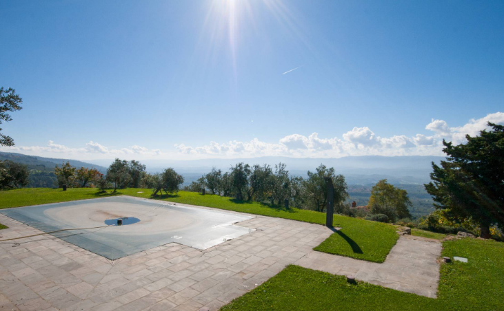 Nemovitost je obklopena přibližně 6 000 m² pozemku, osázeného pečlivě udržovaným olivovým hájem, který zaručuje soukromí a okouzlující přírodní prostředí. Velkou předností je nádherný panoramatický bazén o rozměrech 6 × 12 metrů.