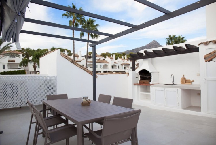 Krásný řadový dům se 3 ložnicemi a 3 koupelnami o rozloze 240 m2 orientovaný na jih je k dispozici v klidné a zelené oblasti Nueva Andalucia, která se nachází vedle nádherného golfového hřiště. Nemovitost nabízí částečný výhled do zahrady a na moře. Dům byl zrekonstruován s vysoce kvalitními povrchovými úpravami a vybaven vším potřebným pro vysoký standard bydlení v Marbelle.