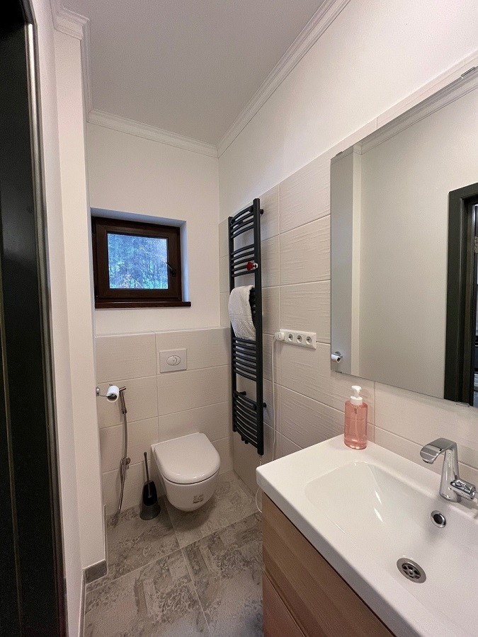 Apartmánový dům: zcela samostatně stojící bytový dům s jedním bytem v přízemí a jedním v prvním patře, oba s vlastním vchodem. Každý z bytů má 2 dvoulůžkové ložnice o rozloze 10 m², prostorný obývací pokoj a jídelnu o rozloze cca 25 m² s otevřenou kuchyní, vše propojeno s balkonem nebo terasou o rozloze 8 m². K dispozici je také prostorná koupelna o rozloze cca 6 m² se sprchovým koutem, umyvadlem a WC. V přízemí se nachází také vnitřní technická místnost.