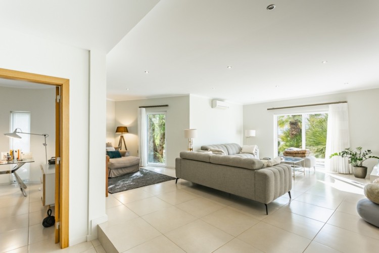 Elegantní, prosluněná vila s bazénem a zahradou dokonale kombinuje tradiční architekturu ve středomořském stylu s moderním designem, Portimão.