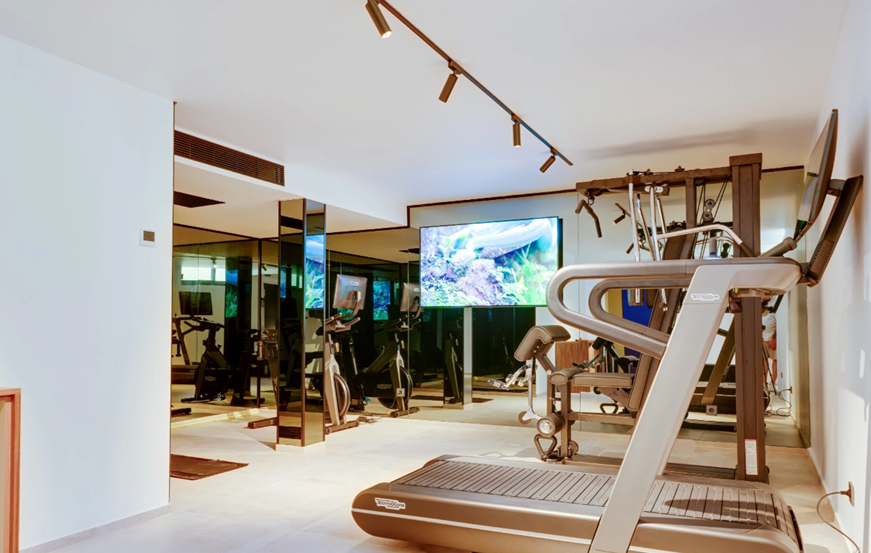 .Na tomto podlaží se nachází plně vybavená posilovna a velká vnitřní vířivka s kapacitou pro více než dvanáct osob, doplněná dvěma odvlhčovači pro optimální kvalitu vzduchu. Sousední šatny nabízejí komfort jako v lázních s prvotřídním sanitárním zařízením, mikrocementovými povrchy a rafinovaným osvětlením, čímž vytvářejí wellness útočiště s atmosférou luxusního resortu.>