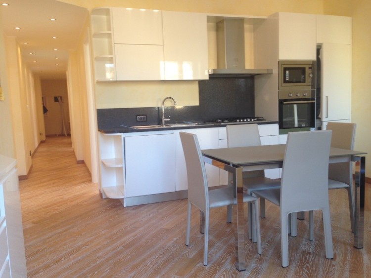 Třípokojový apartmán s panoramatickou terasou, která nabízí velkolepý výhled na moře a okolní zeleň v Alessiu. Byt se nachází v historické budově a prošel rekonstrukcí s citlivými úpravami.