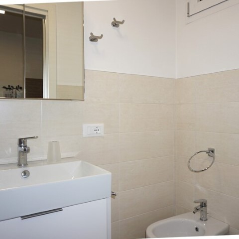 V bytovém komplexu v Porto Santa Margherita, v sedmém a zároveň v posledním podlaží se nachází byt na prodej, který disponuje krásným výhledem na moře. Byt je po kompletní rekonstrukci a skládá se ze vstupu do chodby s vestavěnou skříní, velkého obývacího pokoje s jídelnou a východem na terasu, dvou ložnic, každá s možností přistýlky, koupelny s oknem, terasy s příjemným panoramatickým výhledem na pěší promenádu a moře. Okna obývacího pokoje lze plně otevřít, žaluzie odolávají velmi silnému větru, každý pokoj lze nezávisle vytápět a chladit (s klimatizací Daikin) a je zde rovněž soukromá satelitní anténa.